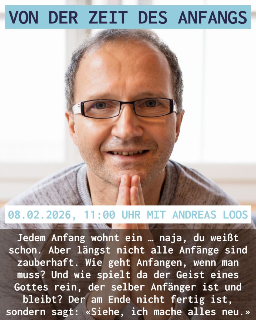 Jedem Anfang wohnt ein … naja, du weißt schon. Aber längst nicht alle Anfänge sind zauberhaft. Wie geht Anfangen, wenn man muss? Und wie spielt da der Geist eines Gottes rein, der selber Anfänger ist und bleibt? Der am Ende nicht fertig ist, sondern sagt: «Siehe, ich mache alles neu.»