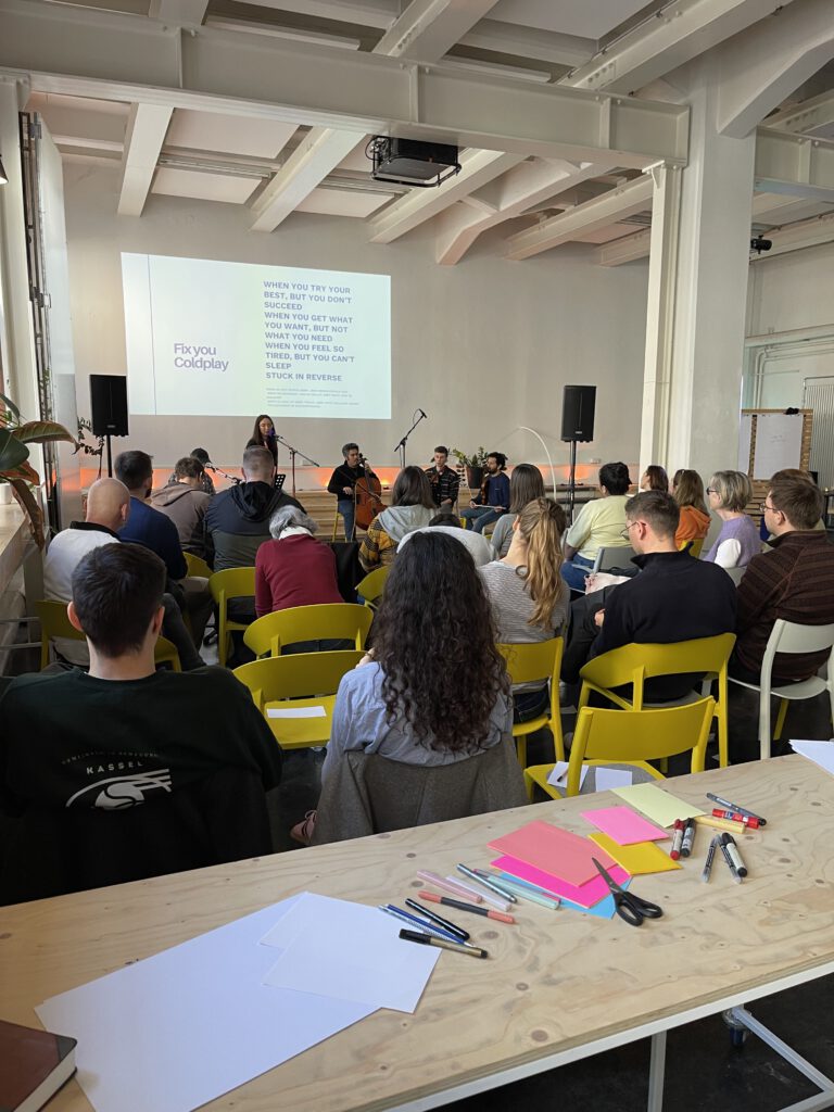 Zu jedem dieser Punkte gab es eine Station, an der wir die Techniken praktisch ausprobieren konnten. Im Anschluss tauschten wir uns offen über unsere Erfahrungen aus – nicht nur über die Übungen, sondern auch über unser Leben, das nicht immer geradlinig oder erfolgreich verläuft und uns manchmal knallhart ausbremst. Dieser ehrliche und bewegende Austausch war ein besonderer Moment des Gottesdienstes, für den wir sehr dankbar sind.