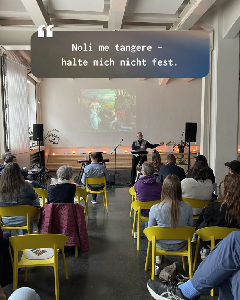 Der Satz „Noli me tangere“ wird im Impuls als Einladung verstanden, vertraute Bilder loszulassen.