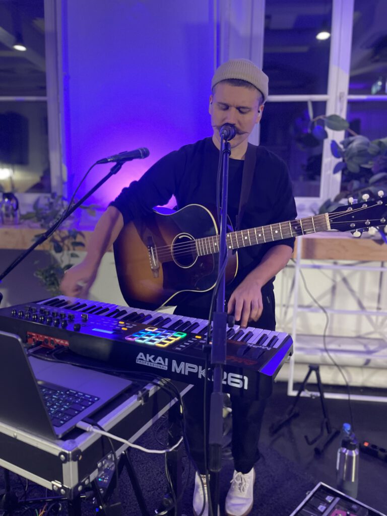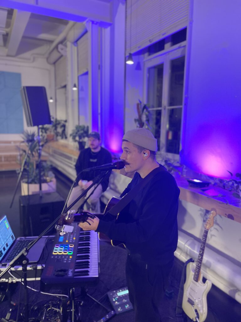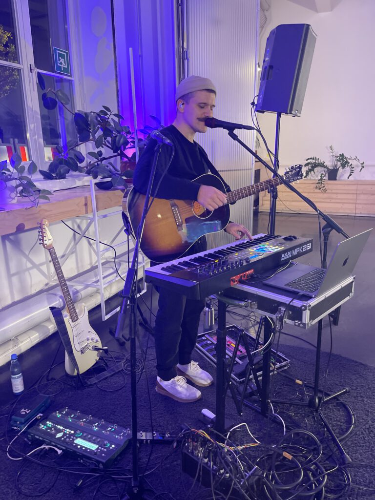 Zwei Stunden lang füllten sich unsere Räume mit Texten, Klängen und Emotionen, die unter die Haut gingen. Kilian Mohns verschmolz gefühlvoll melancholische Singer-Songwriter-Musik mit einer mitreißenden Ein-Mann-Multi-Instrumentalisten-Loop-Show: Folk-Gitarre trifft auf Synth-Bässe, Vocoder, Beats und technische Raffinesse. Seine Songs – mal zart, mal kraftvoll – erzählten von Aufbruch, Freundschaft, Zweifel und Hoffnung. „So why do you hesitate to leave all that life you hate?“ sang er in Waterfall – und plötzlich war da dieser Moment, in dem man sich selbst darin wiederfand.