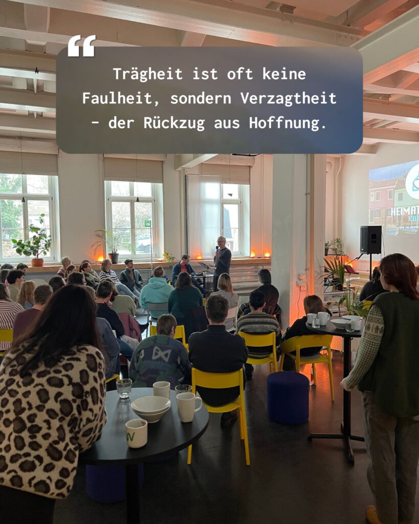 Der Impuls endet bewusst offen – als Einladung zum Gespräch, zur Selbstreflexion und zur gemeinsamen Suche nach Wegen aus Verzagtheit hin zu neuem Aufbruch.