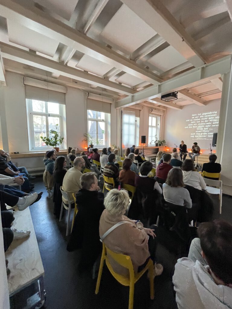 21.01.2024 – Nach einer vierwöchigen Winterpause hatten wir heute unseren ersten Heimathafen-Gottesdienst in 2024. Und was sollen wir sagen? Wir sind überwältigt von der Resonanz. Etwas mehr als 50 Menschen sind heute im Heimathafen eingelaufen. Wir hatten einen guten Austausch über die Jahreslosung „Alles, was ihr tut, geschehe in Liebe“, eine schöne Zeit des gemeinsamen Singens und Betens und im Anschluss noch viel Gelegenheit, um miteinander bei Kaffee und Snacks ins Gespräch zu kommen. Schön, dass ihr da gewesen seid. Und die nicht kommen konnten: In zwei Wochen treffen wir uns wieder. Musikalisch wird euch dann etwas ganz Besonderes erwarten. Mehr dazu in den nächsten Tagen…