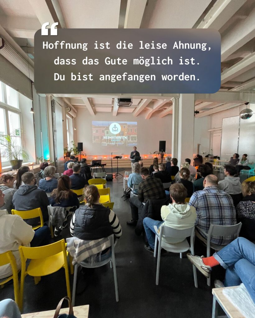 29.10.2023 – Offen für Vielfalt – Ein Herzensthema für uns als Heimathafen Kassel. Wir sind dankbar für 40 Gottesdienst-Teilnehmer:innen, die uns sehr geduldig und nachsichtig bei unseren ersten Gehversuchen begleiten, wenn wir z.B. beim Timeboxing grandios daneben liegen oder blauäugig neue Interaktionsformate ausprobieren. Danke für eure Resonanz und guten Wünsche. Und wow, es melden sich immer mehr Leute, die den Heimathafen mitgestalten wollen. Wir können unser Glück kaum fassen! Habt guten tragenden Rückenwind für die neue Woche. Wir sehen uns am 12.11.2023 um 10:30 Uhr im RaumFrei wieder!